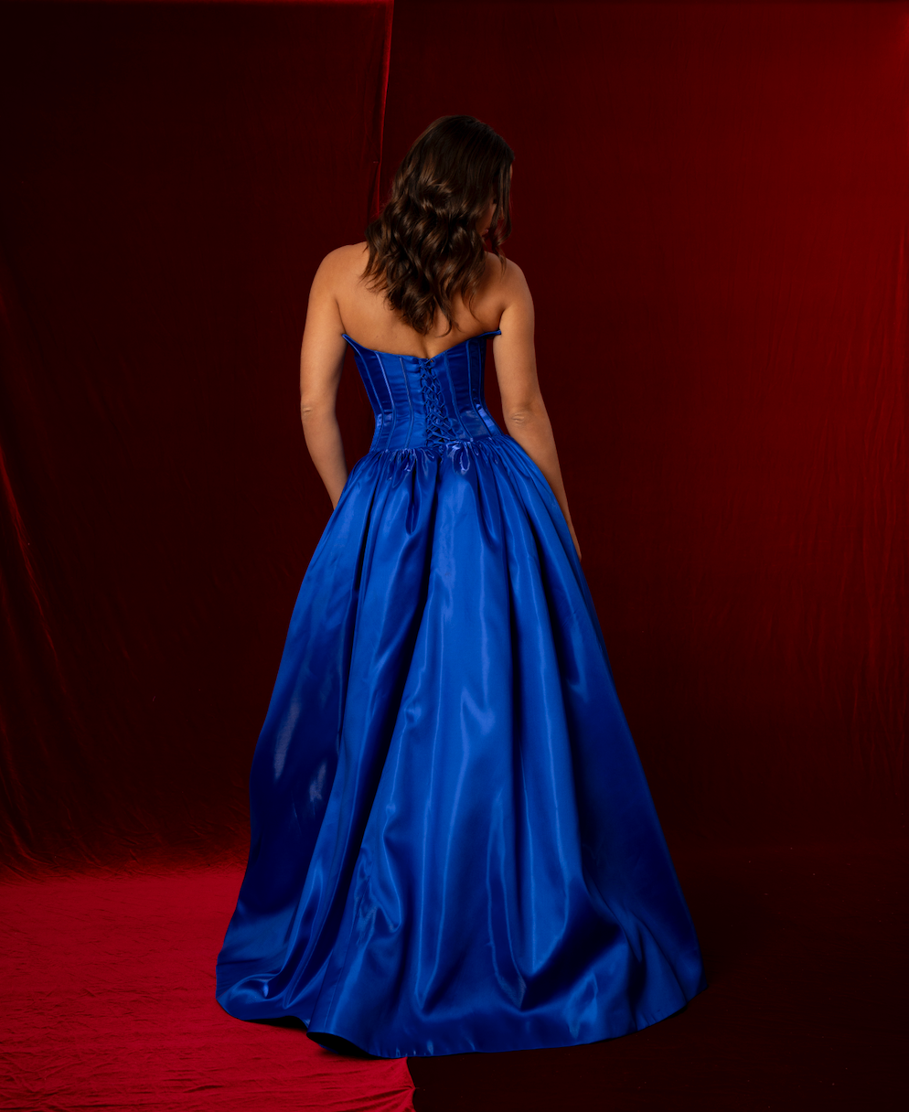 Backless: These elegant dresses are perfect if you want to be the centre of attention, and they can be styled in many ways with different jewellery and makeup options. Some of our most popular backless dresses include our baby blue Hermione dress featuring a laced crisscross back, which adds to the overall sophistication, and the strapless Temika maroon beaded lace dress, which features beautiful detailing and a stylish slit down the right-hand side.