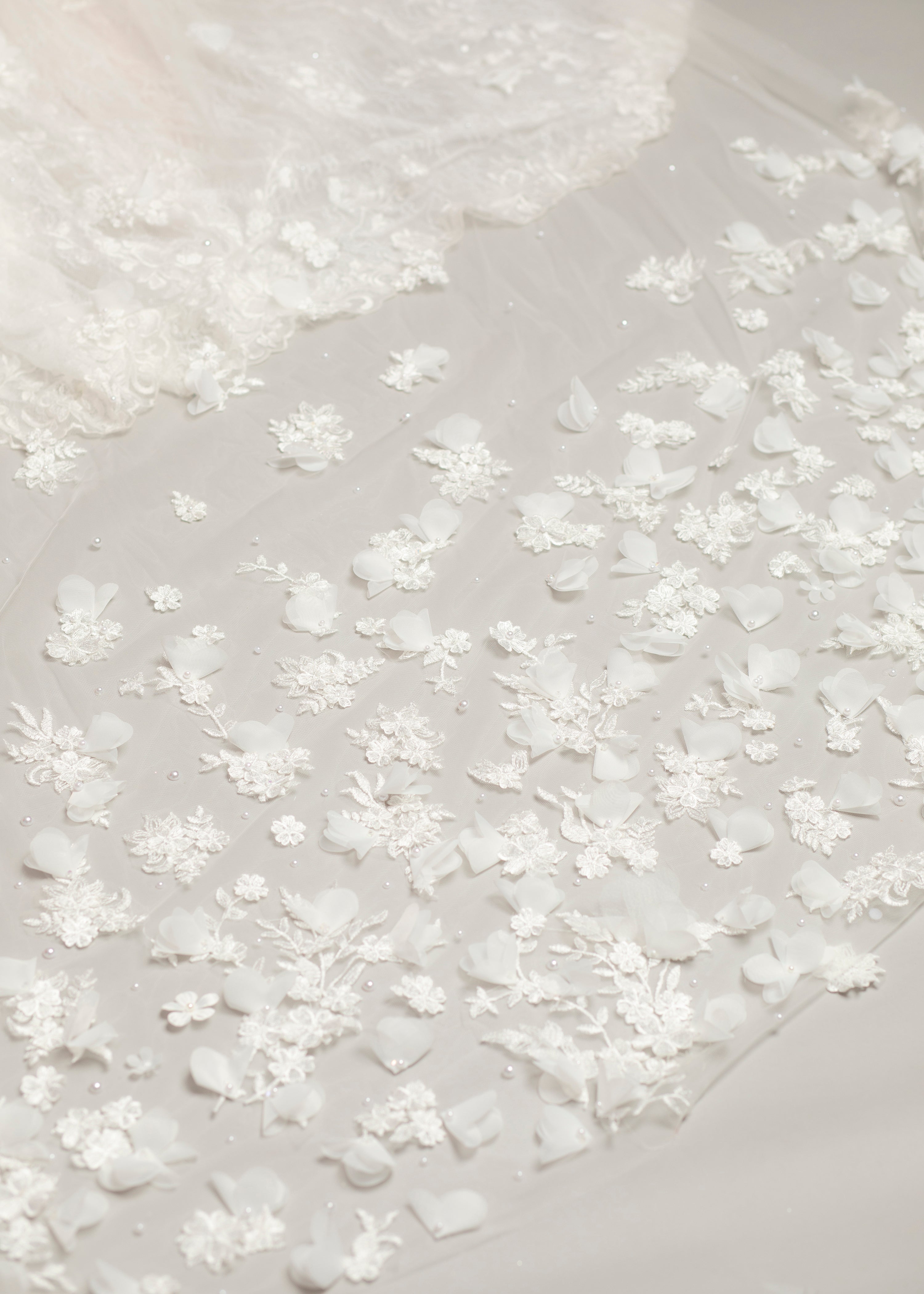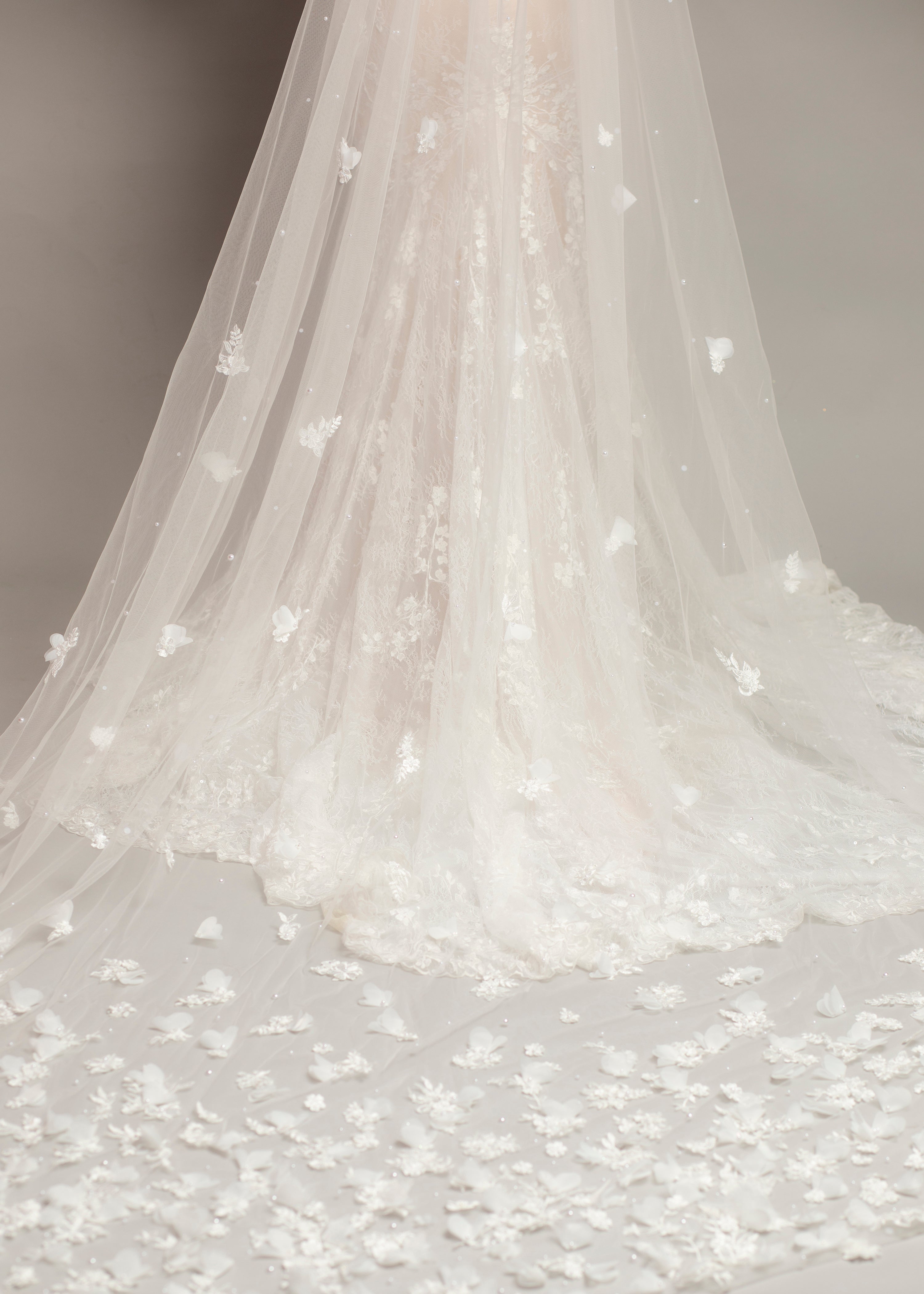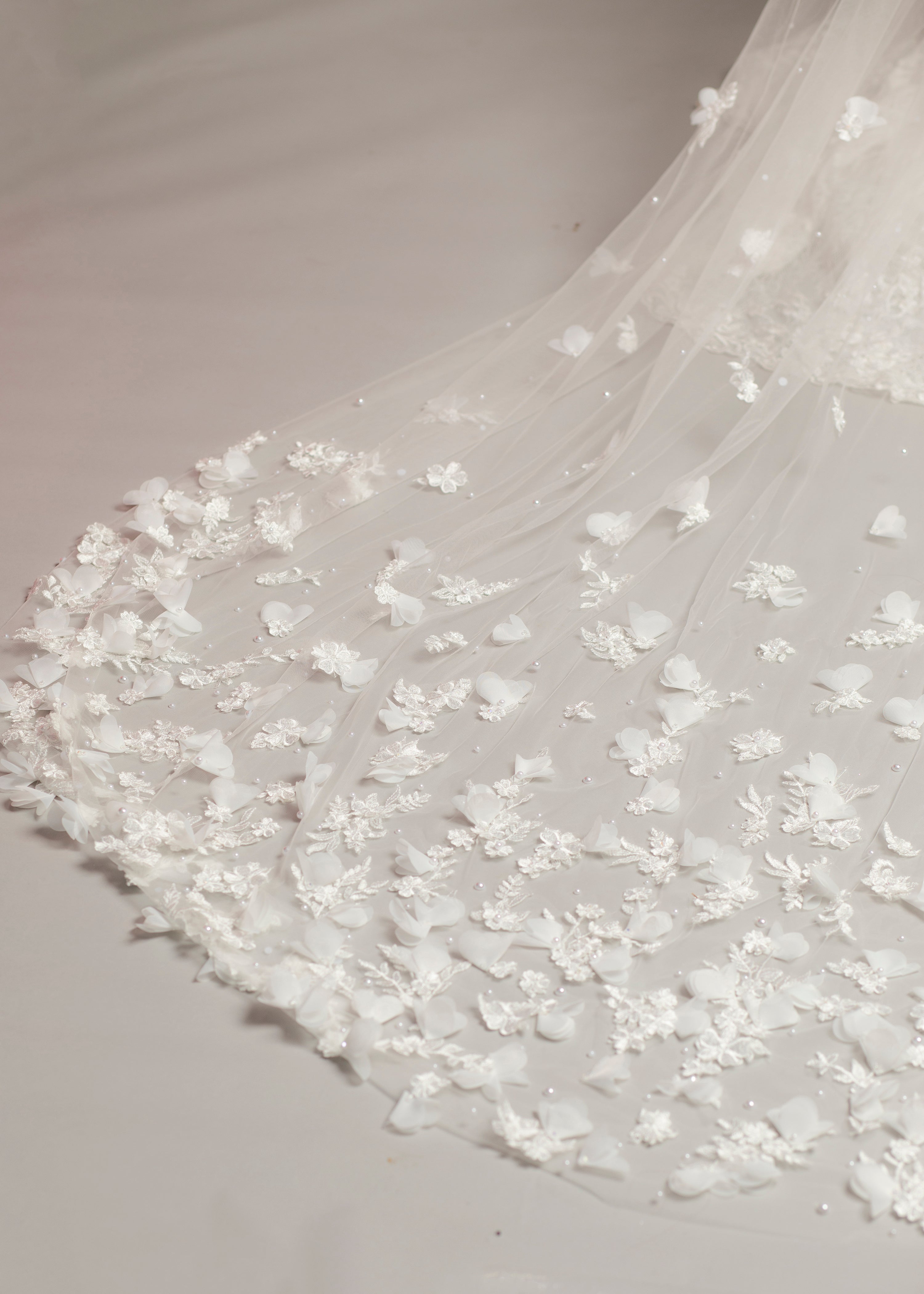 3D floral long train bridal veil