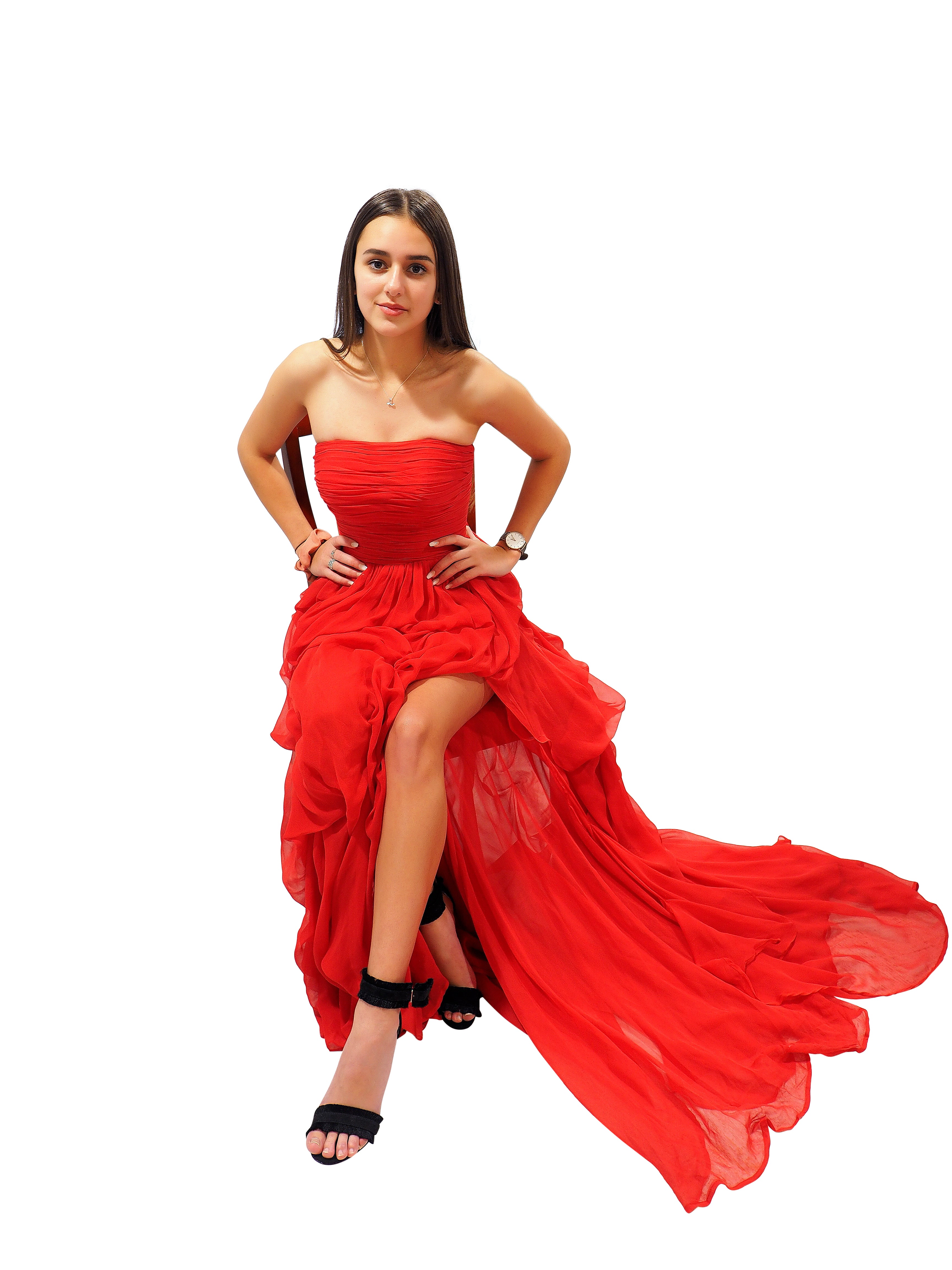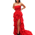 Red silk layered dress