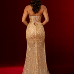 Gold beaded Basque waist open back dangling lace v neck corset top mermaid dress