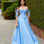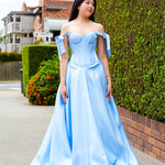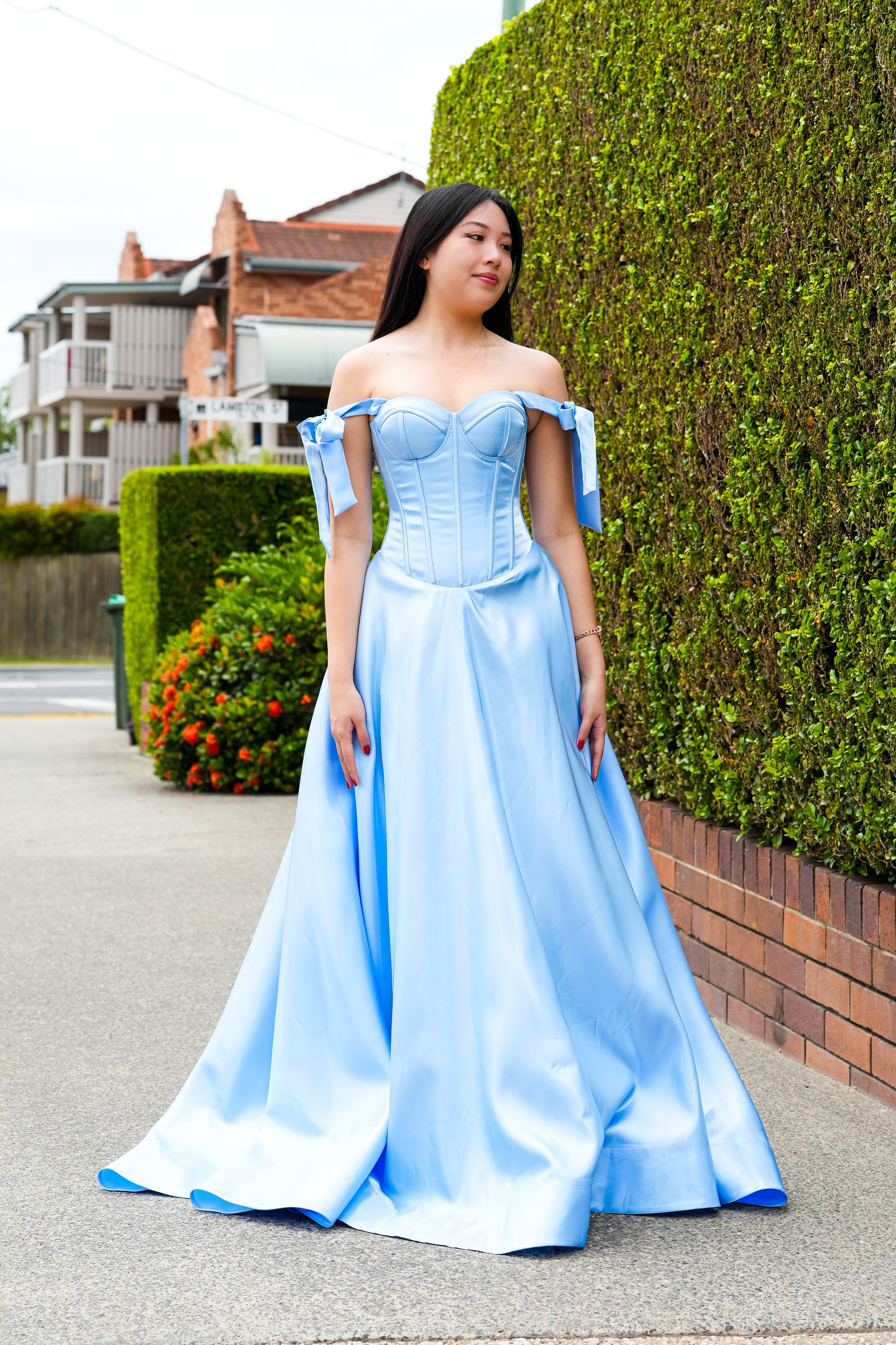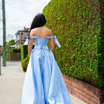 Introducing Lindella — a breathtaking reinvention of timeless romance and sculptural design. This light baby blue gown features a structured bustier cup bodice and a dramatic drop waist, crafted with a super-strong internal corset for maximum support and an ultra-snatched silhouette. The floor-length skirt flows effortlessly without a slit, allowing the focus to stay on the dreamy craftsmanship and refined detailing.