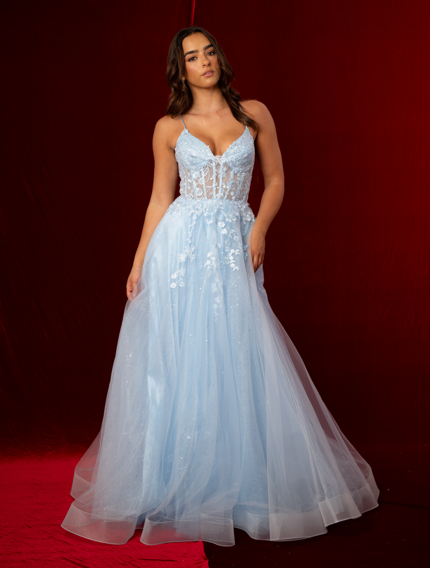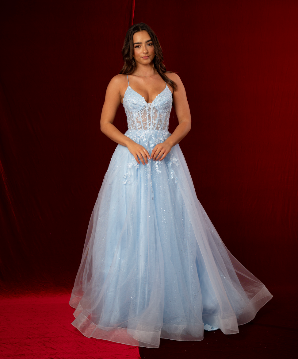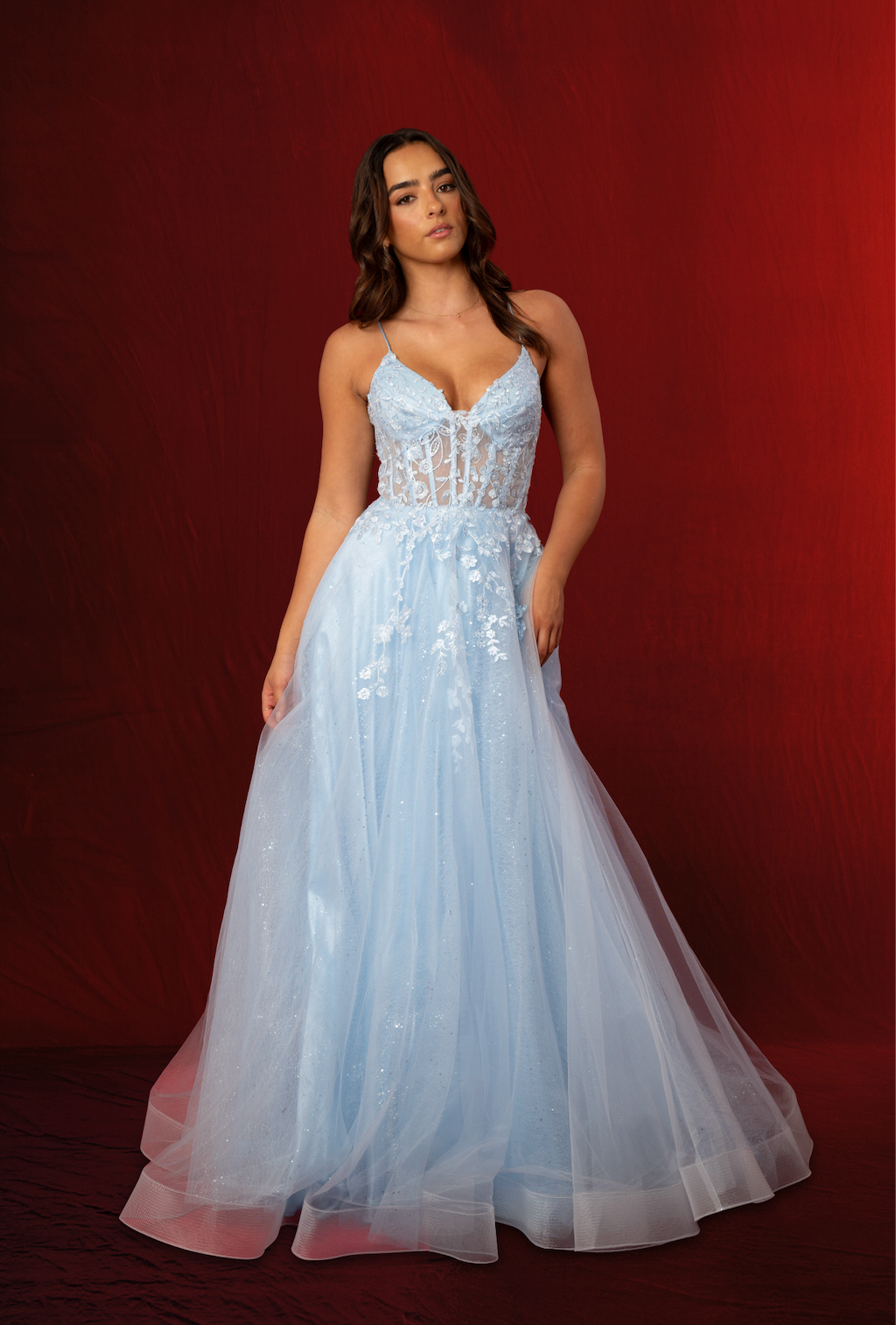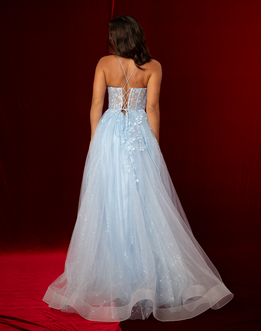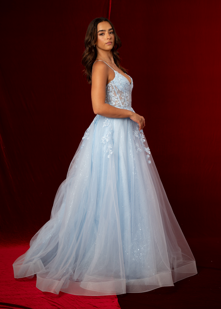 Sky Blue sparkling tulle corset lace princess dress with lace up back