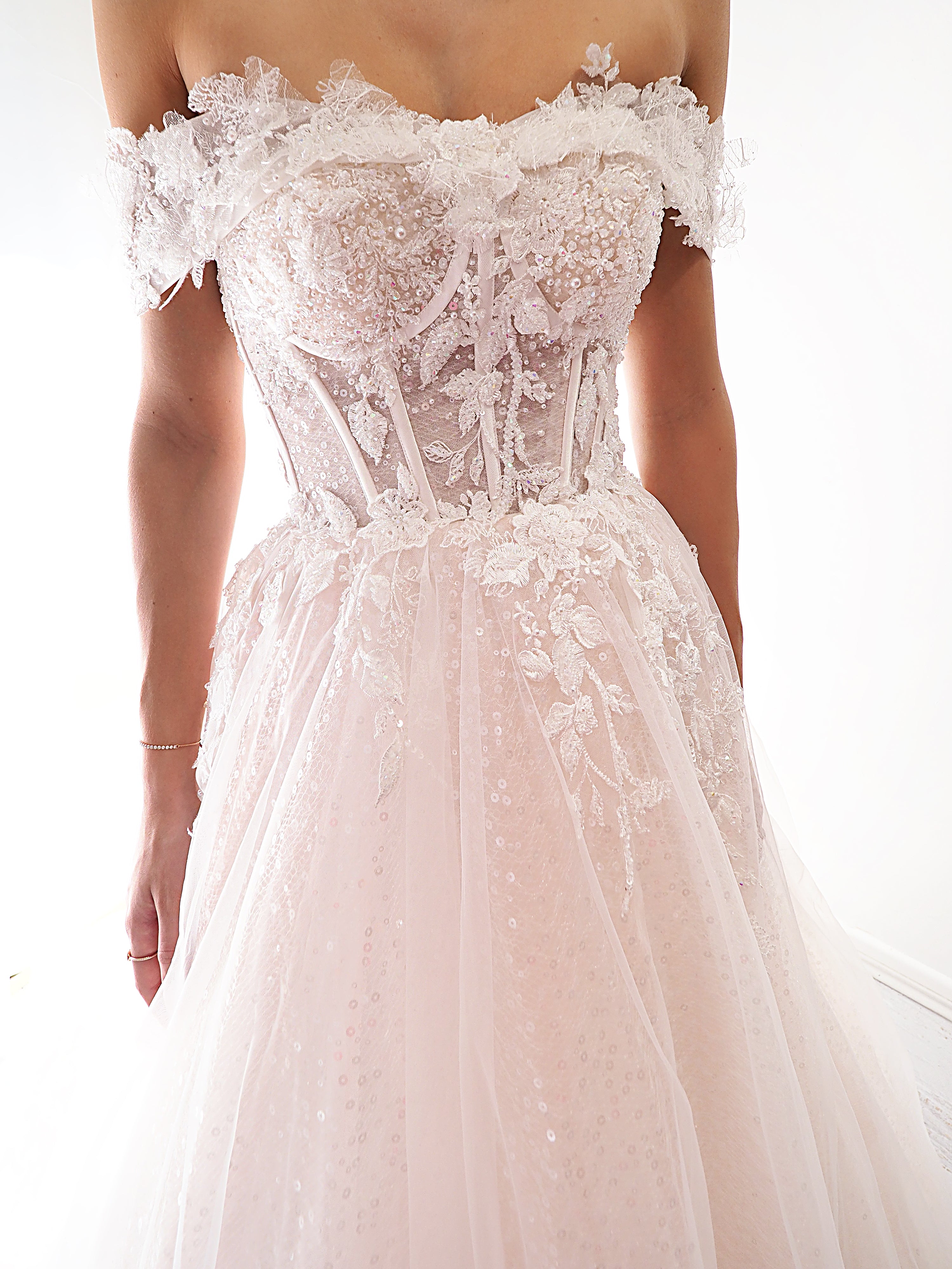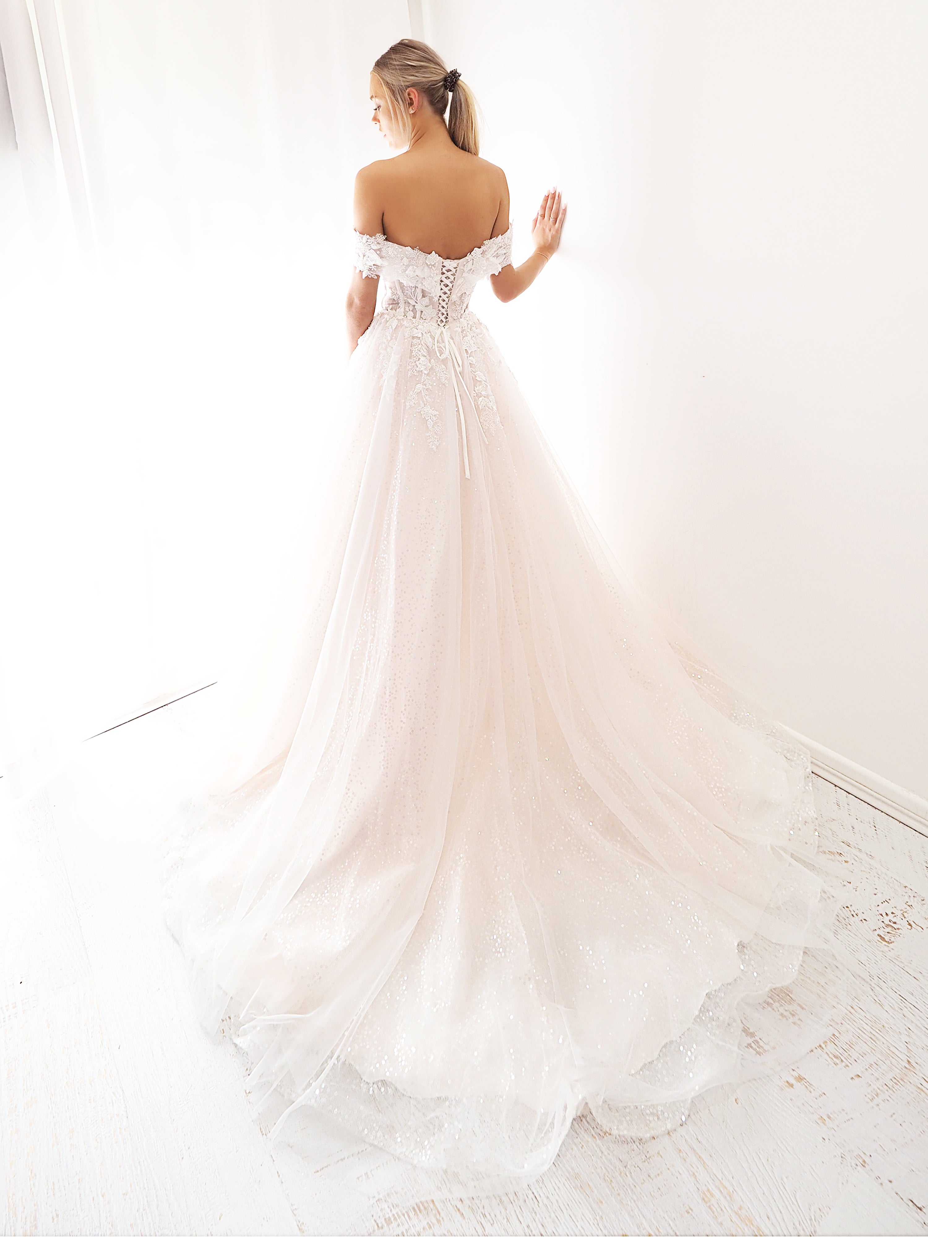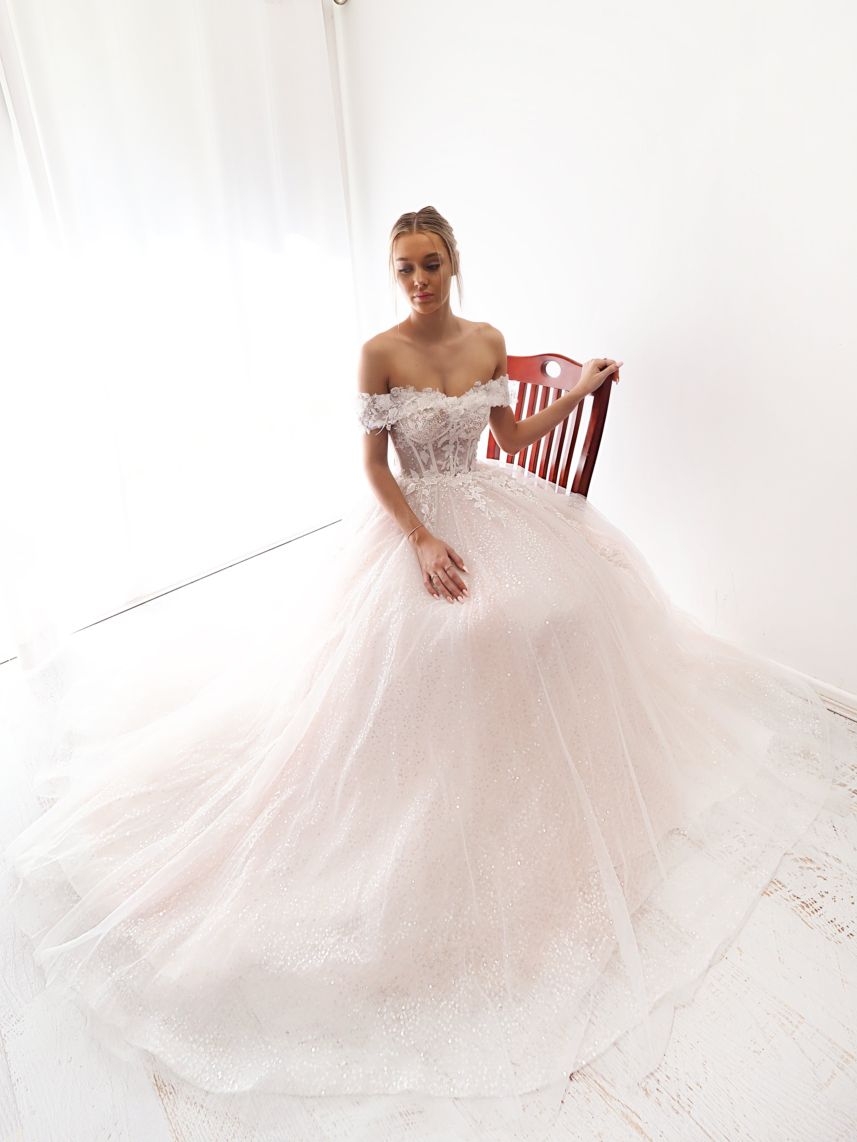 - Inside the skirt there is an extra layer of sparkling glittered tulle to add extra glamour to the dress.