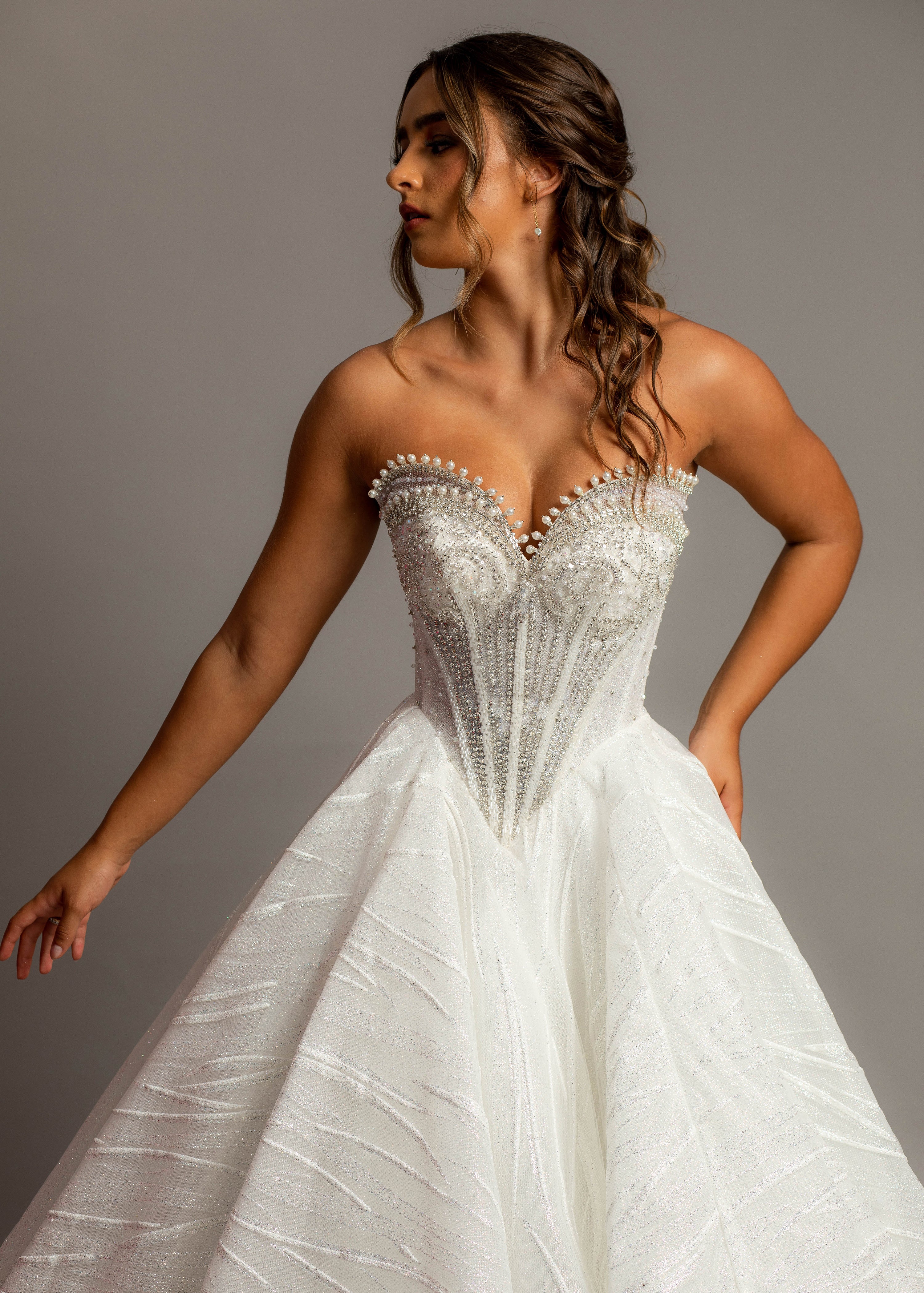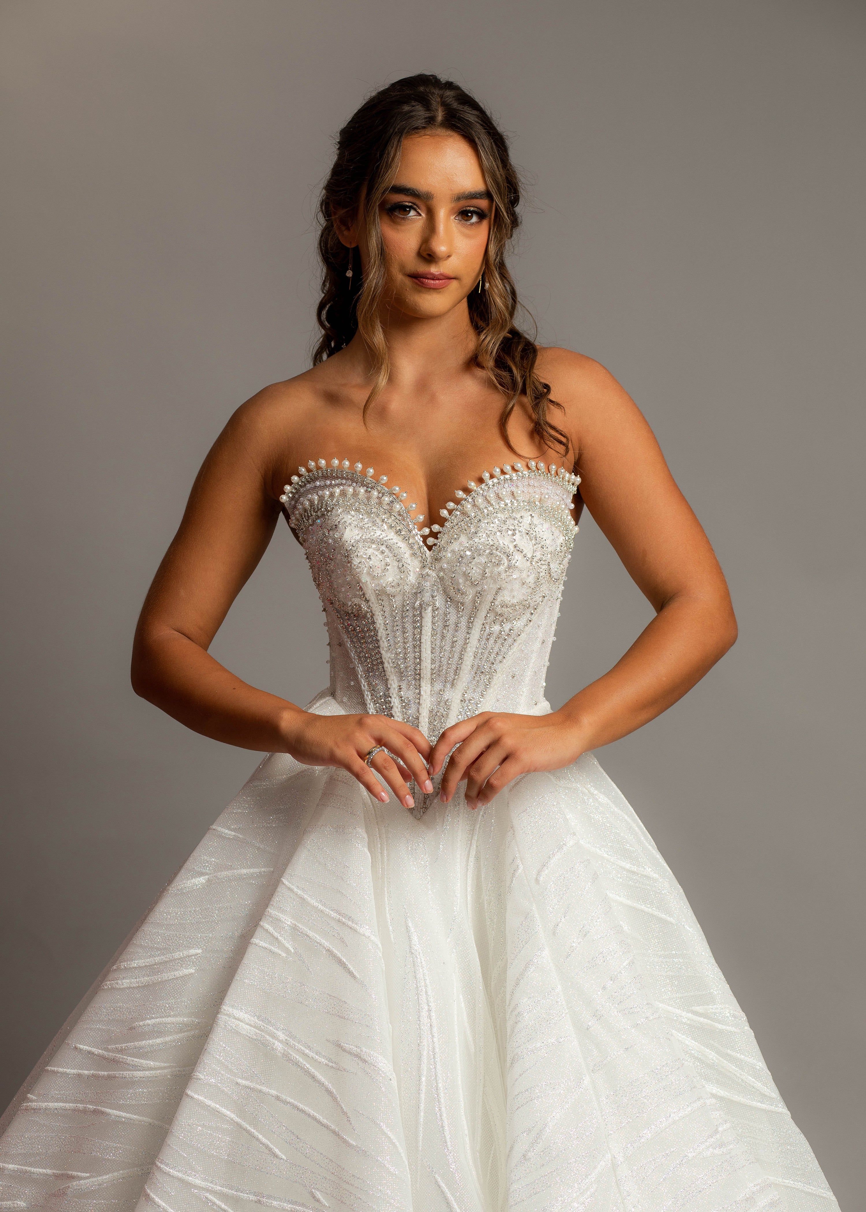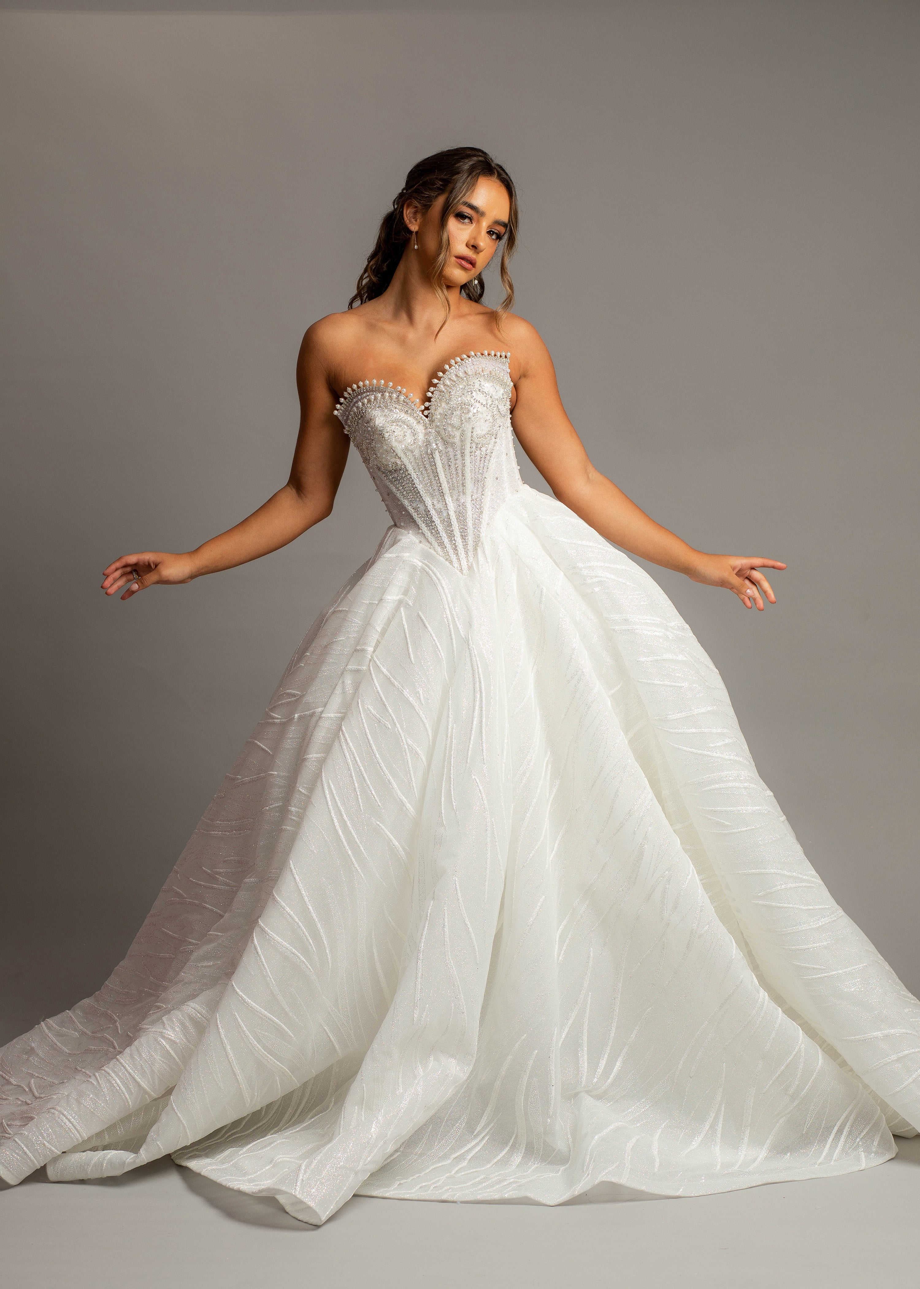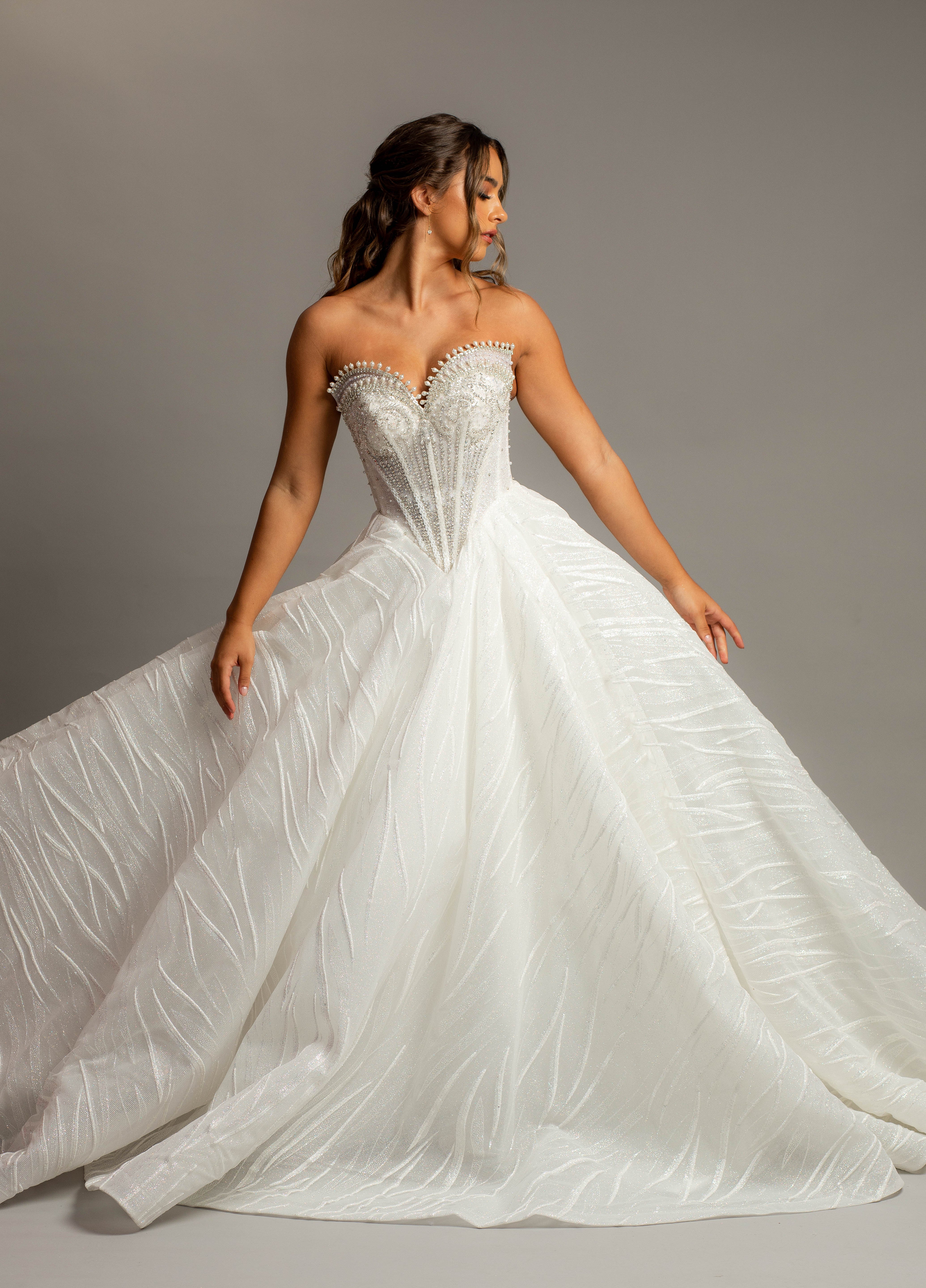 Adela transcends conventional beauty with its timeless elegance and whimsical charm, making it the perfect choice for a fairy tale wedding. With its exquisite craftsmanship and attention to detail, Adela embodies the essence of romance and magic, ensuring you radiate with ethereal grace on your special day.