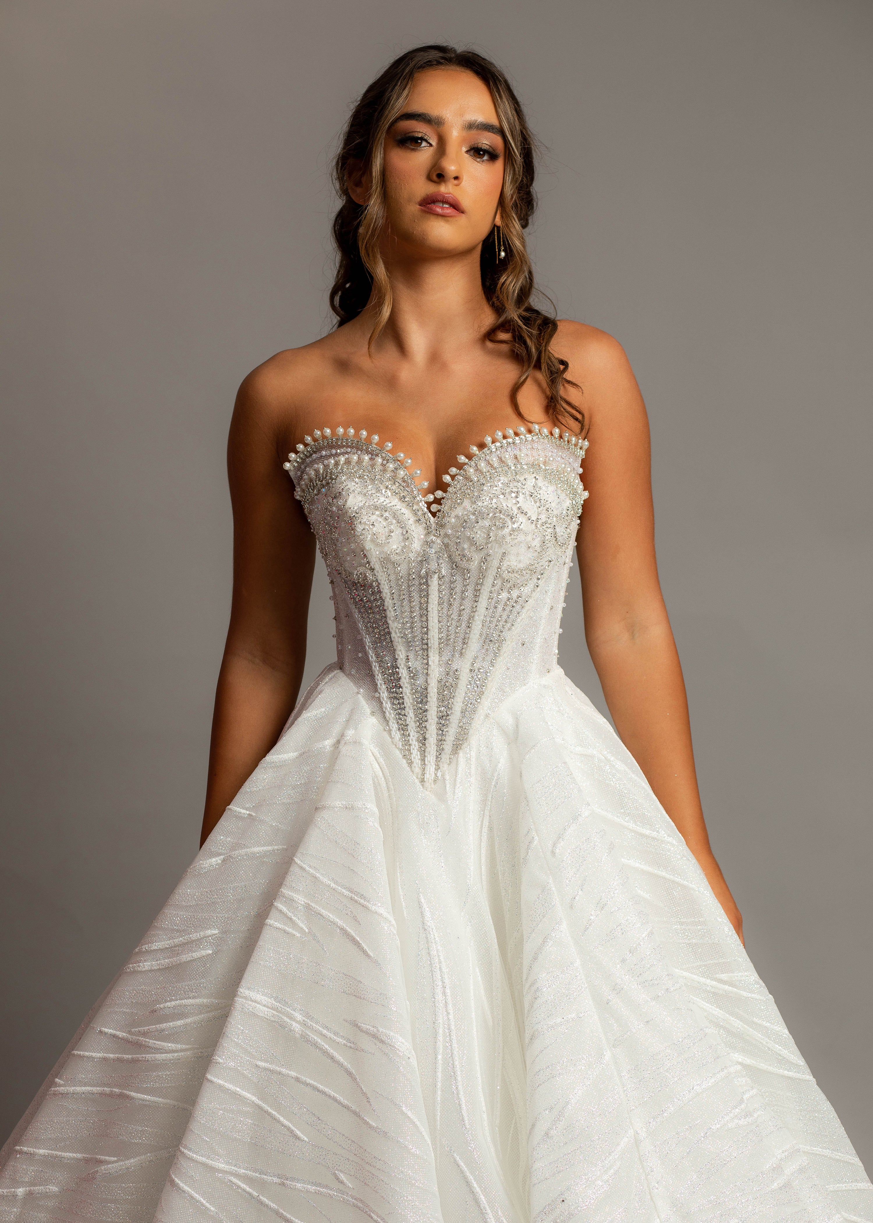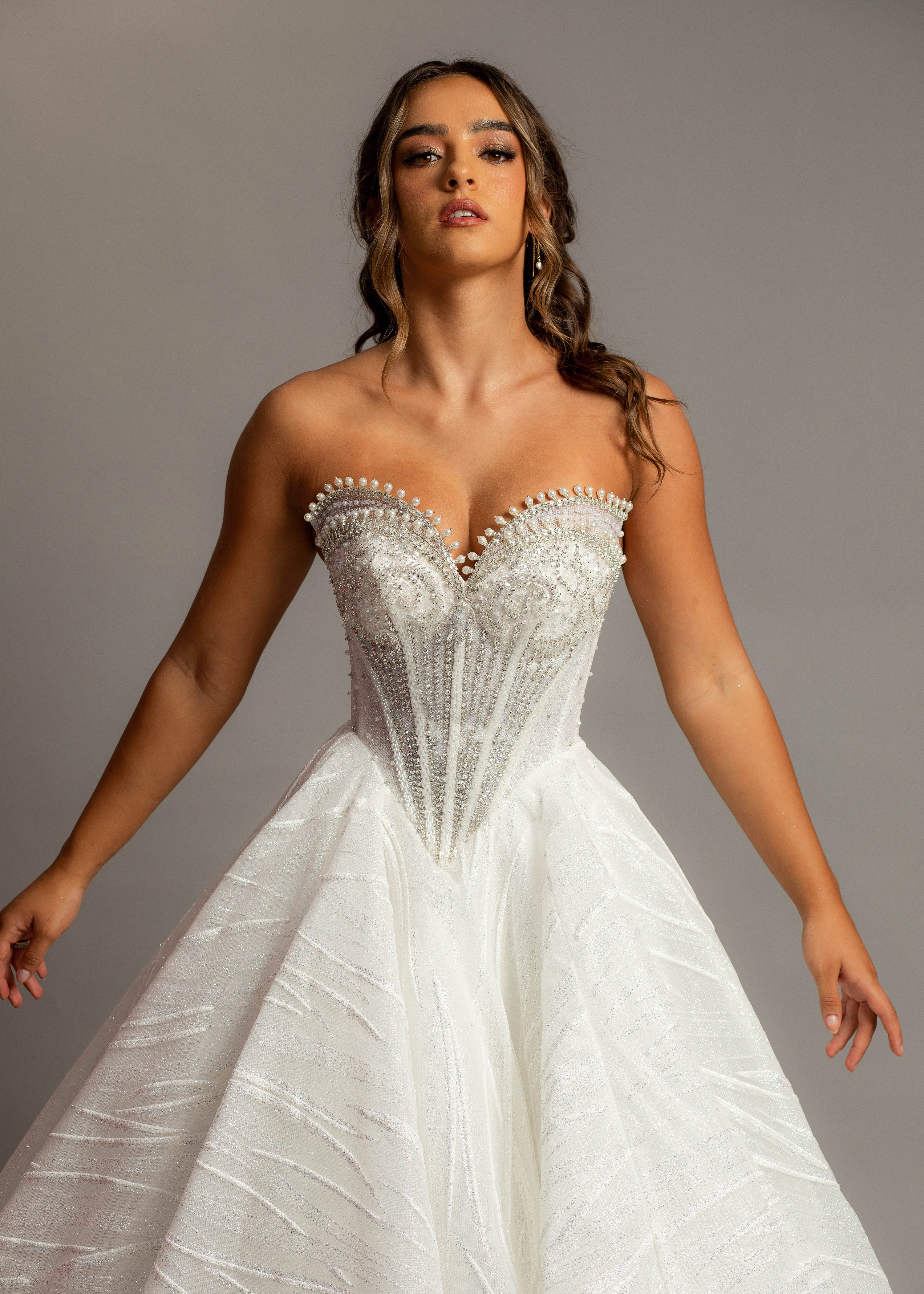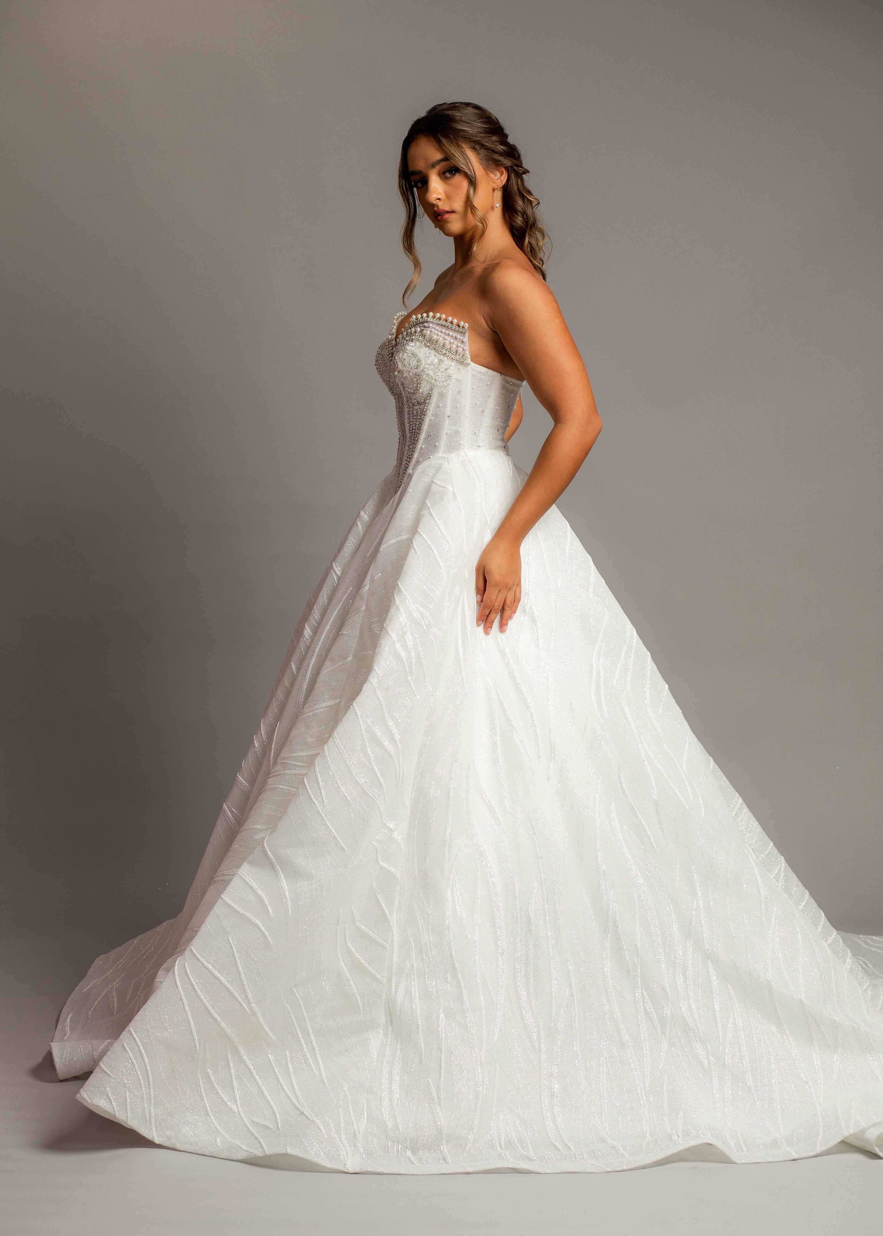 Adela transcends conventional beauty with its timeless elegance and whimsical charm, making it the perfect choice for a fairy tale wedding. With its exquisite craftsmanship and attention to detail, Adela embodies the essence of romance and magic, ensuring you radiate with ethereal grace on your special day.