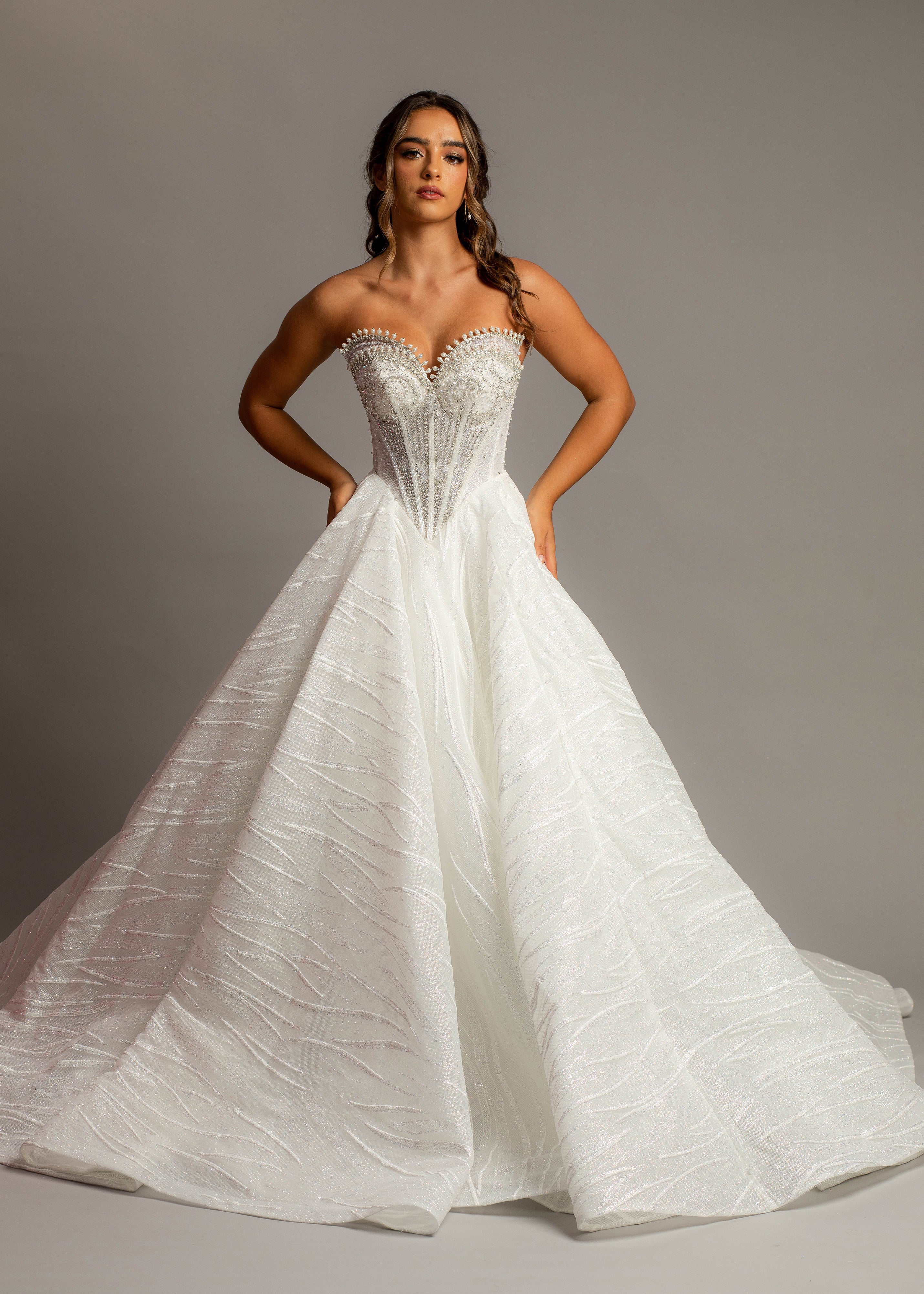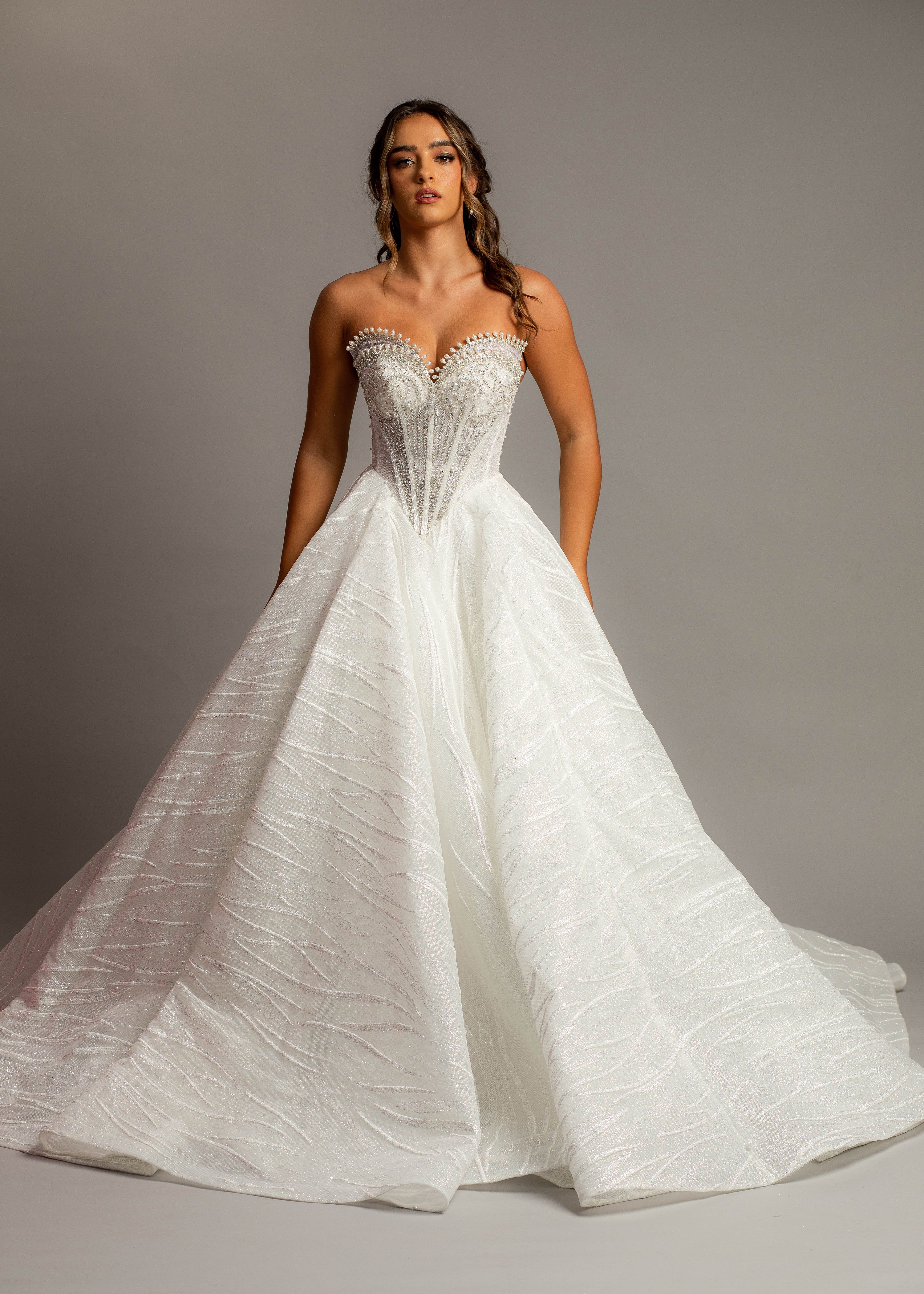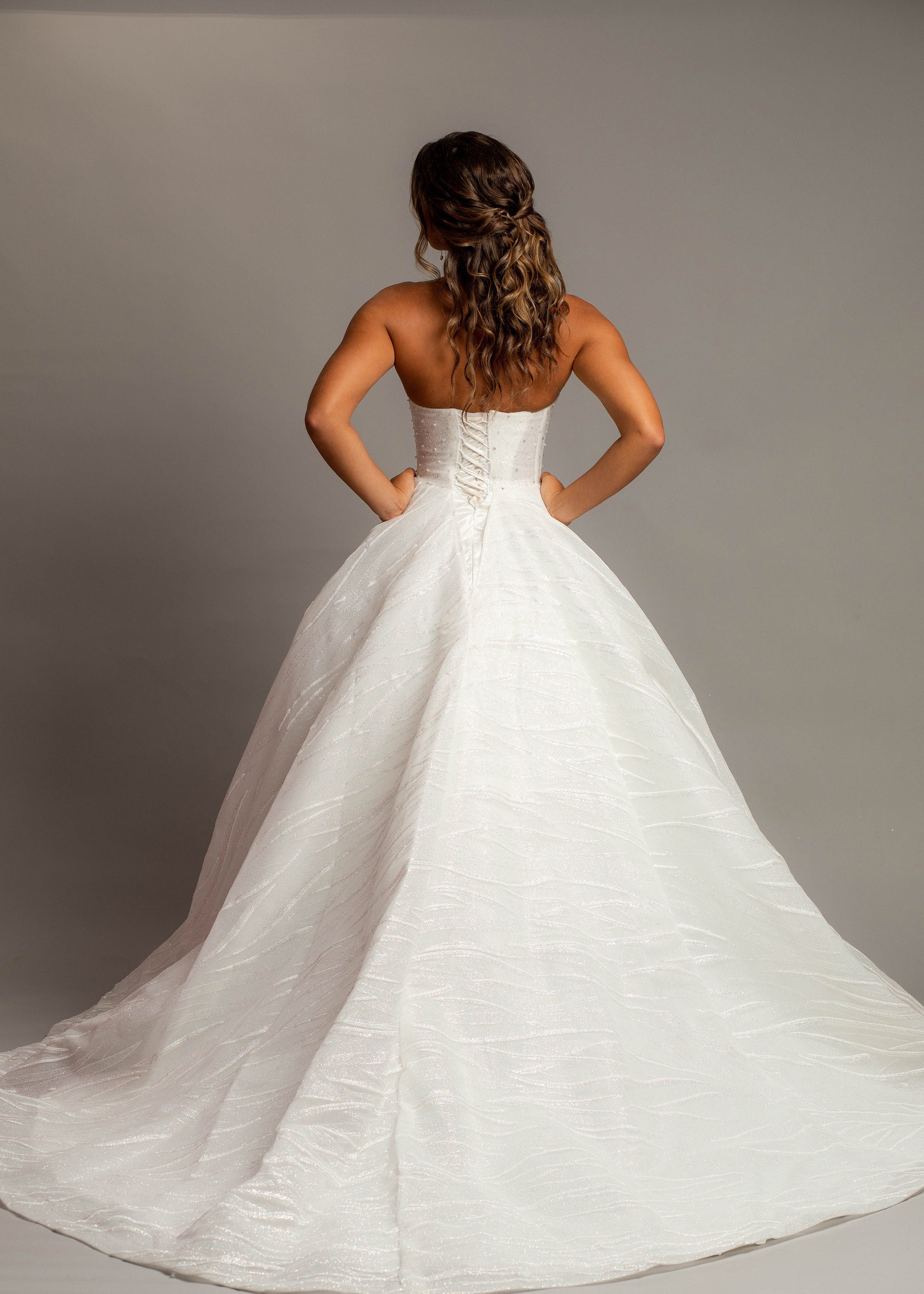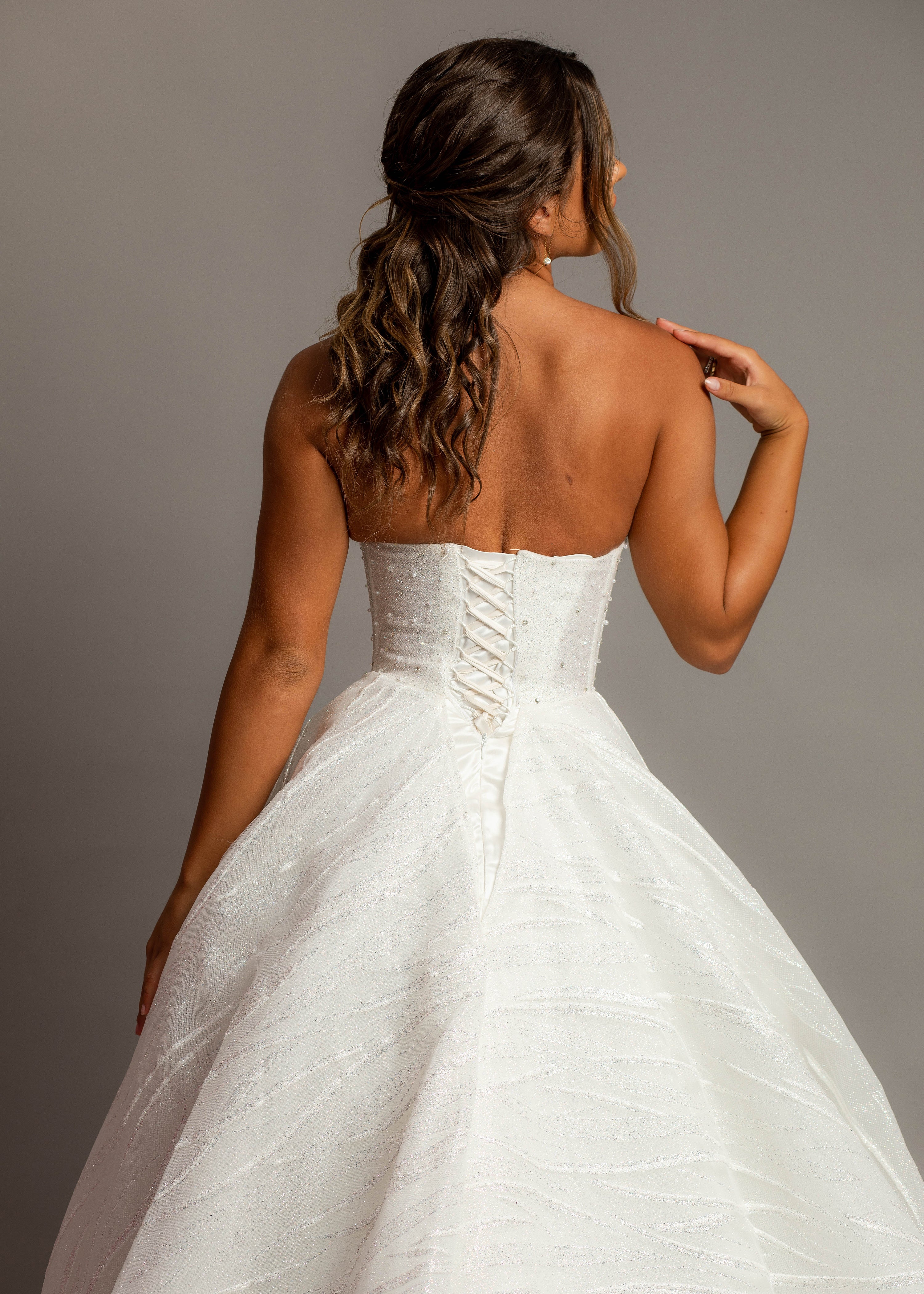 Adela transcends conventional beauty with its timeless elegance and whimsical charm, making it the perfect choice for a fairy tale wedding. With its exquisite craftsmanship and attention to detail, Adela embodies the essence of romance and magic, ensuring you radiate with ethereal grace on your special day.